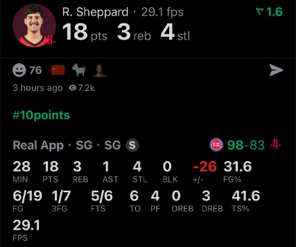 今天打活塞,又被打回原型,谢泼德出战28分钟,19中6,三分7中1得到18分3板1助攻4抢断,余孽都心灰意冷,无技术无速度无体格,这彩票算是刮废了。